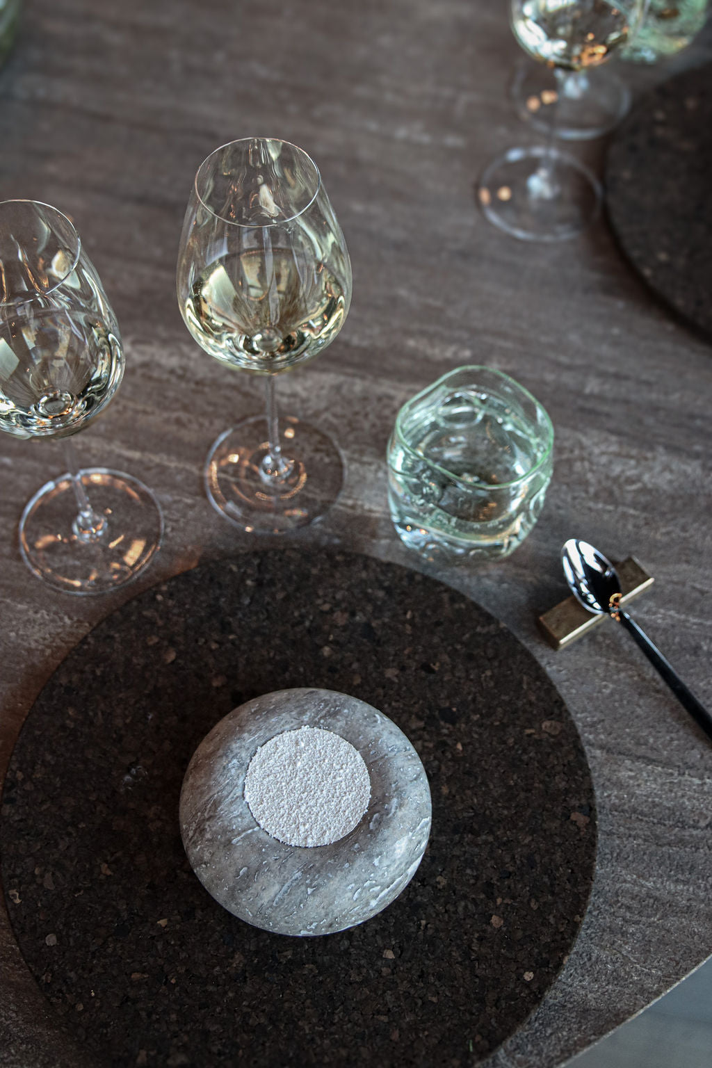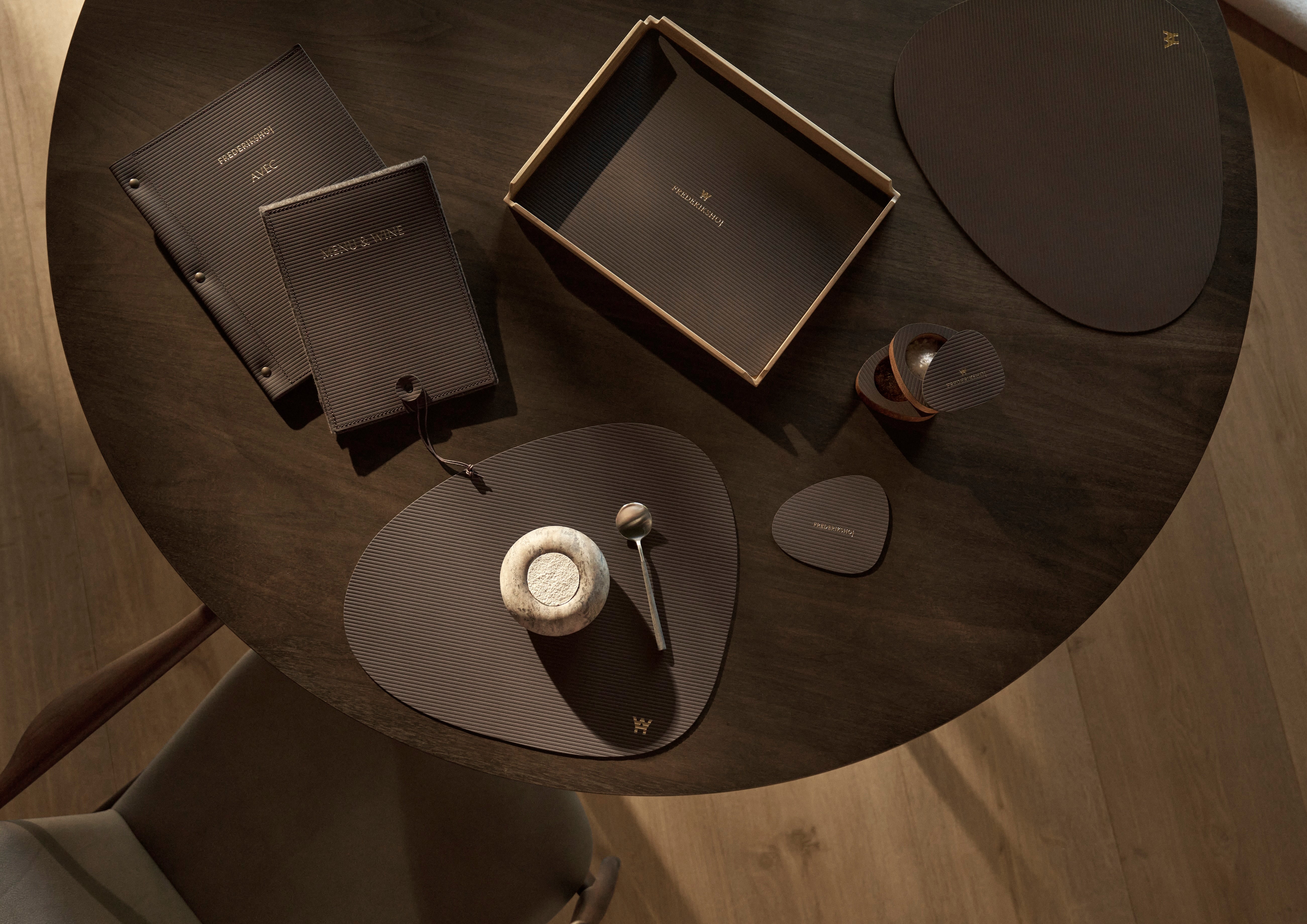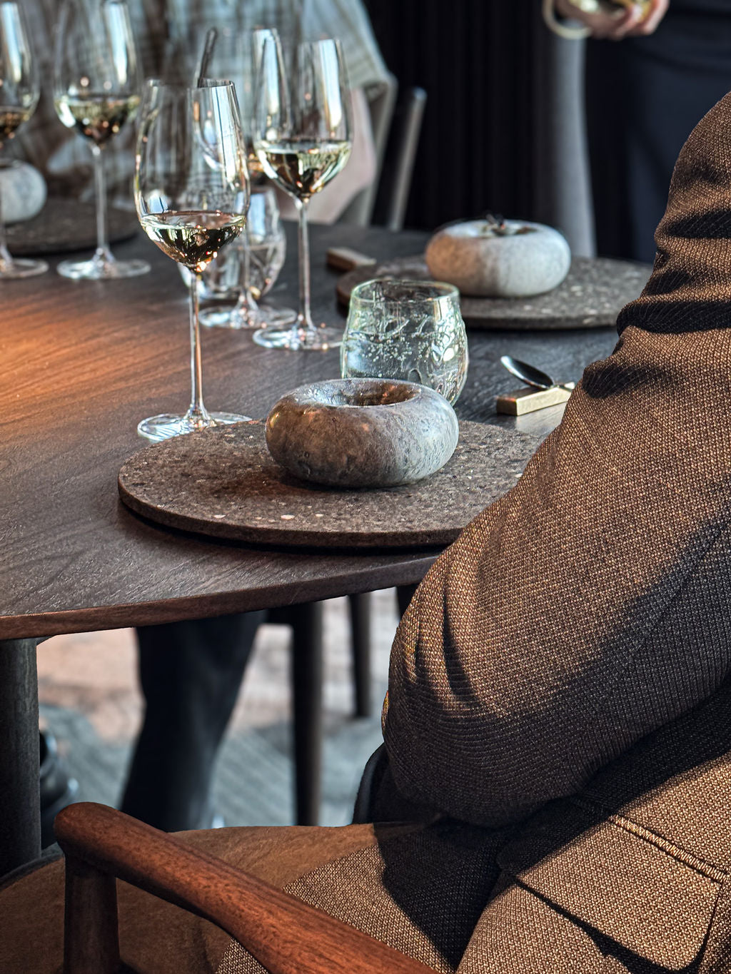 Disse elementer er nøje udvalgt for deres evne til at bidrage med både taktilitet, tyngde og elegance til Frederikshøjs unikke univers. Materialernes naturlige udtryk understøtter restaurantens visuelle og sanselige fortælling og indgår som integrerede dele af den samlede gæsteoplevelse.
