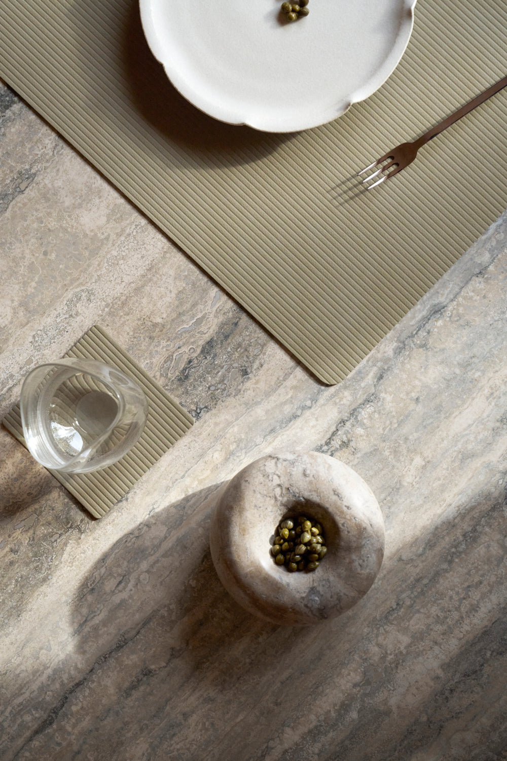 Det særlige ved dette samarbejde er sammensmeltningen af forskellige materialer og udtryk. LIND DNAs sans for taktilitet og bæredygtige overflader møder vores fokus på rå æstetik og naturlige former. Resultatet er et visuelt univers, hvor kontraster skaber harmoni og hvor materialerne i fællesskab løfter helhedsoplevelsen.