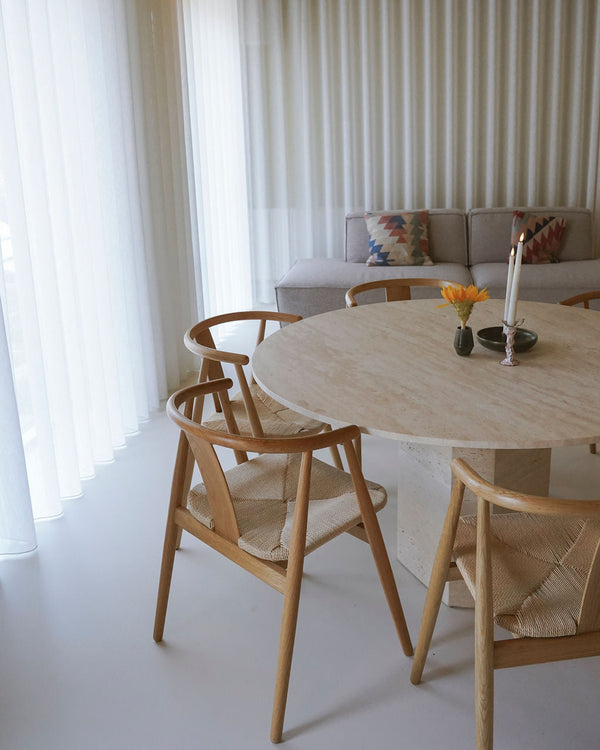 Til Stoff Nagels showroom i Aarhus har vi leveret en række nøje udvalgte designs i travertin: herunder spisebord, bænke og piedestaler. Læs mere om processen med fokus på travertin hele vejen igennem.