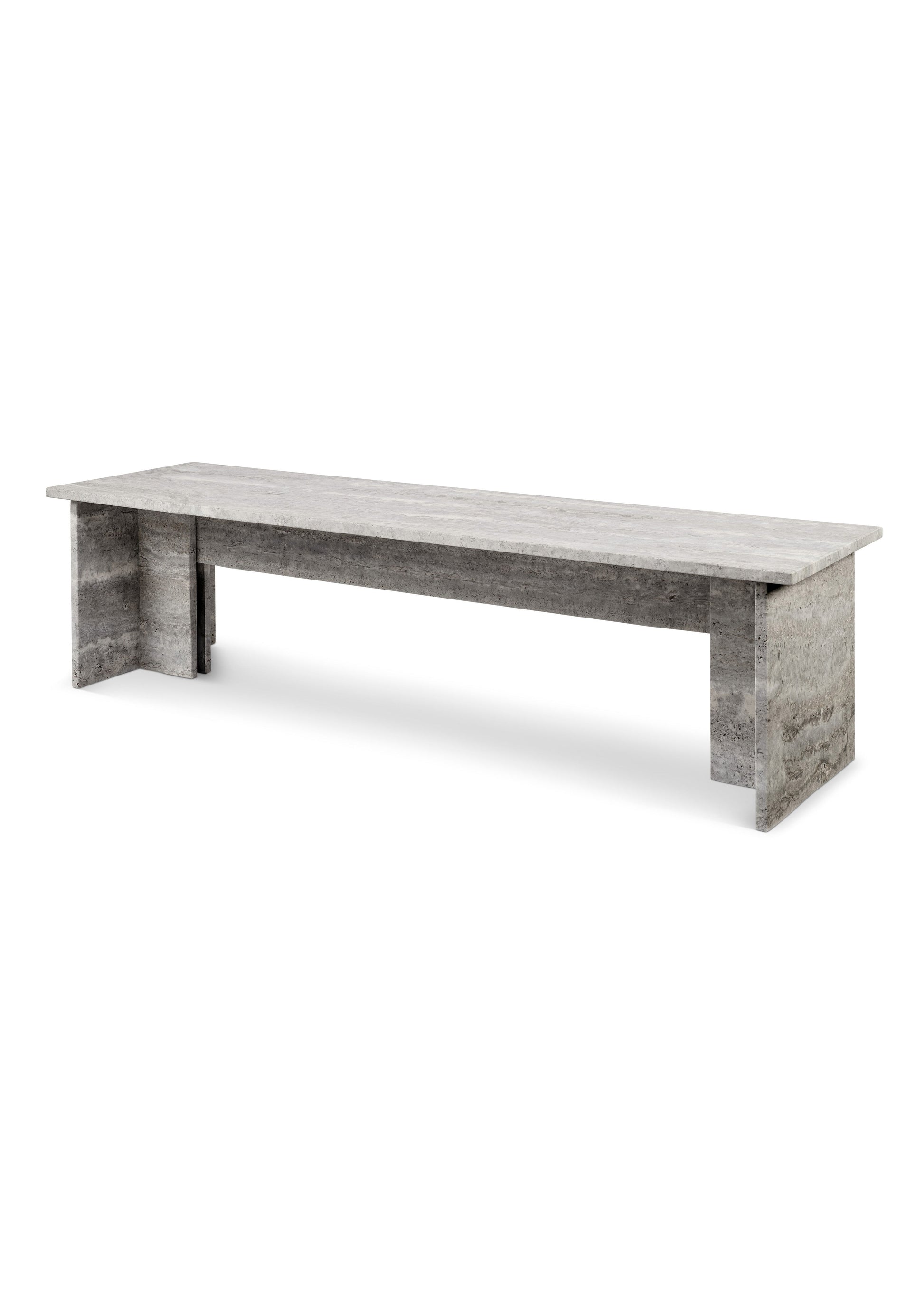 Dette møbel er lavet i den elegante kalksten Travertin Silver fra Europa. De grå og brune nuancer skaber en neutral baggrund, mens små, fine hvide glimt tilfører liv og dybde til overfladen.