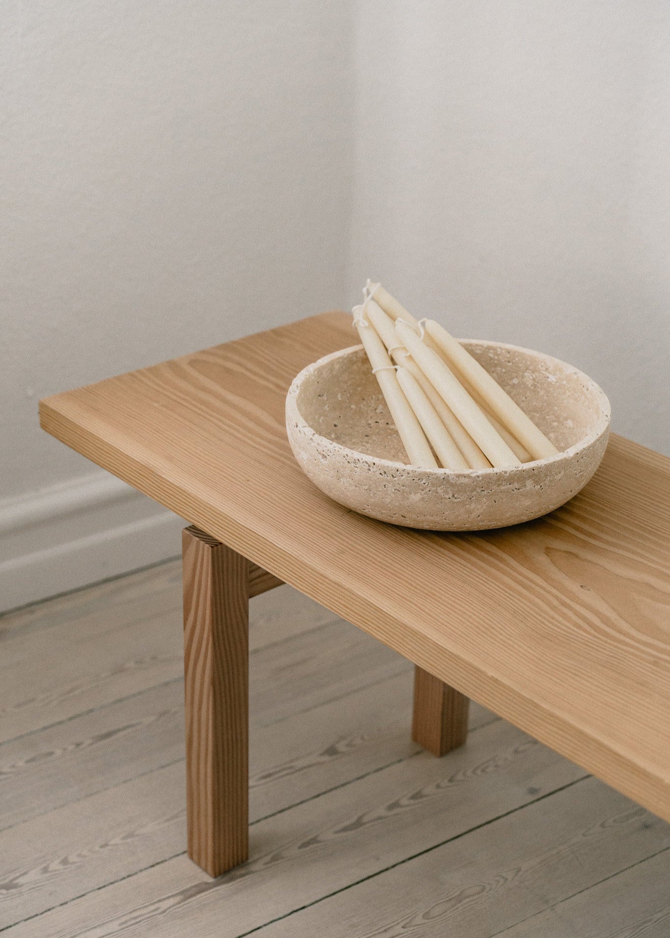 Denne skål er vores bud på et funktionelt og æstetisk objekt, der kan bidrage til en samhørighed med vores øvrige designs. Ved at gentage det samme materiale flere steder i hjemmet skabes en smuk ro og elegance, der klæder de fleste indretninger.