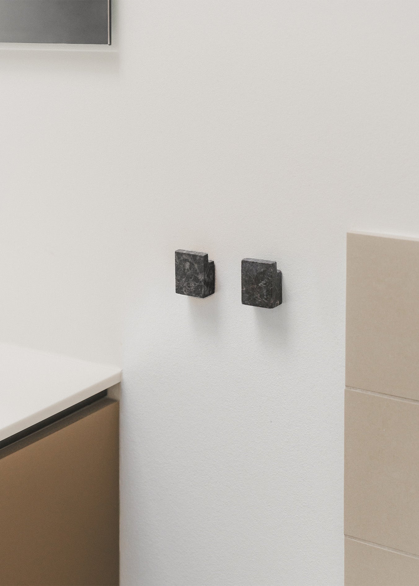 Øster er en lille serie af firkantede knager og greb i natursten. Det simple design sikrer en god funktionalitet, der passer ind i langt de fleste hjem. Brug dem på badeværelset til håndklæder, i køkkenet til viskestykker, eller i entréen til overtøjet.