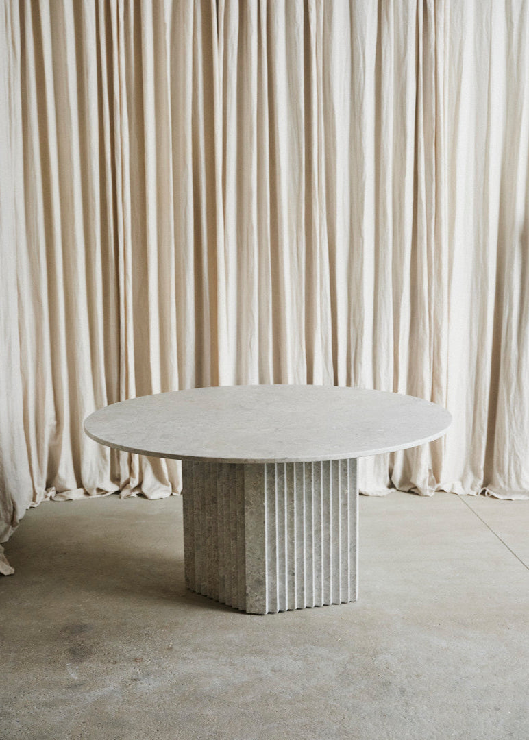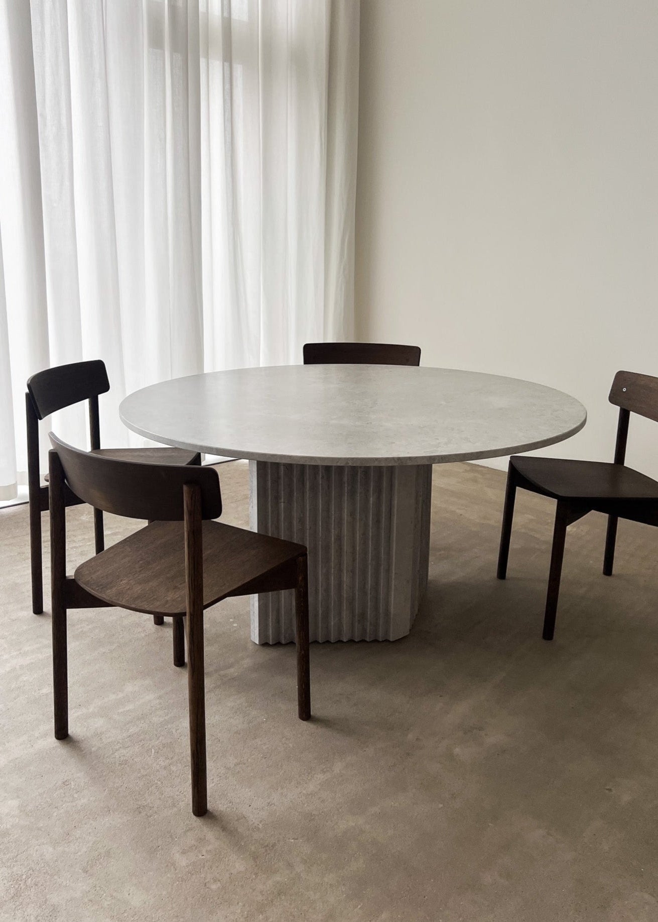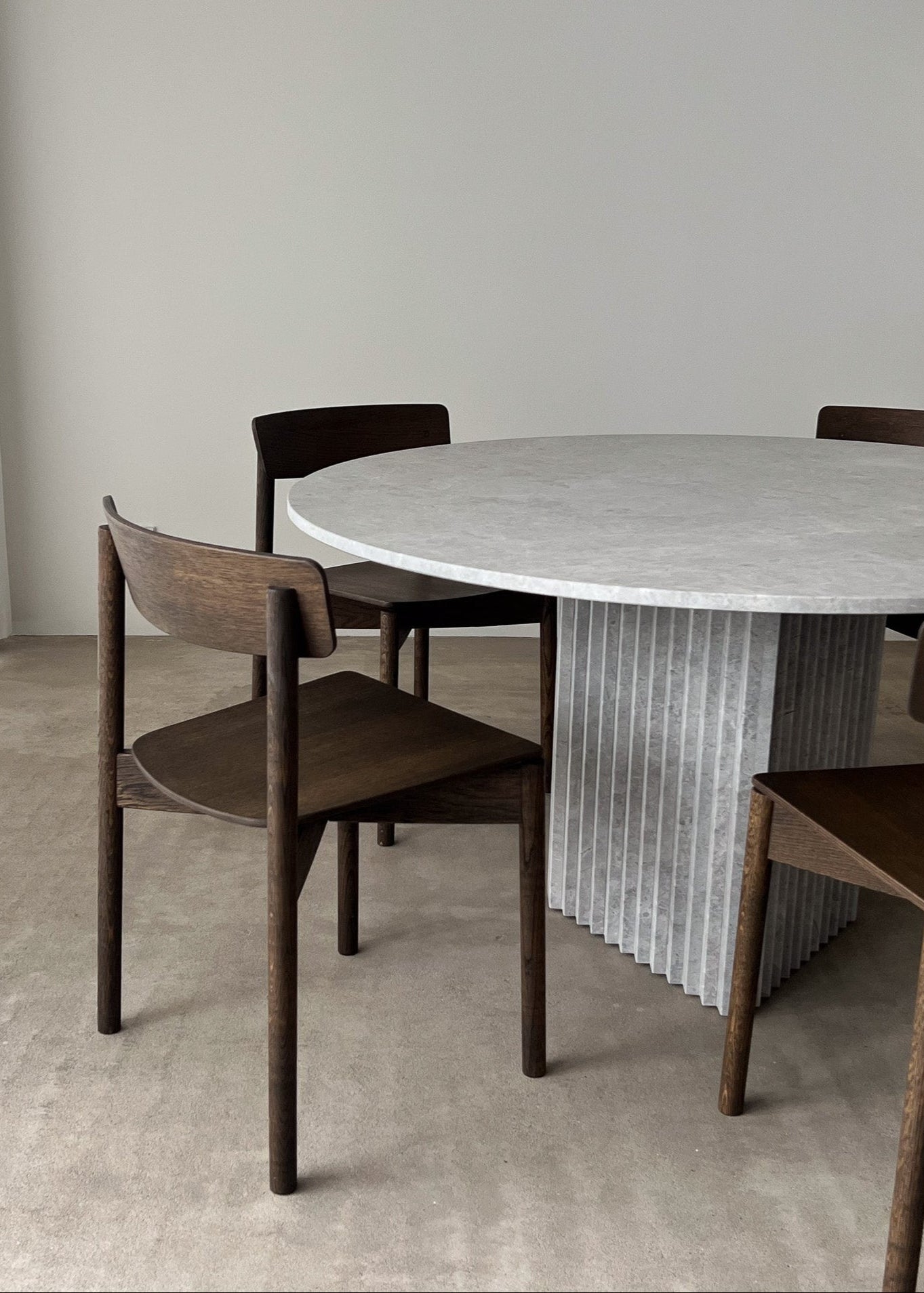 Solar er funktionelt socialt, imødekommende og cirkulært i sin grundtanke. Spisebordets form skaber en velkommen, blød oplevelse til dit rums rette vinkler. Soklen er udformet med både en bred og en smal side, hvilket giver mulighed for at skabe varierende udtryk, afhængigt af hvilken vinkel du foretrækker.